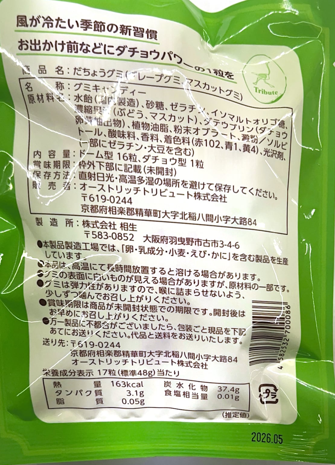 【ダチョウ力グミ 風の季節+】パワーアップバージョン風の季節のダチョウ力グミ